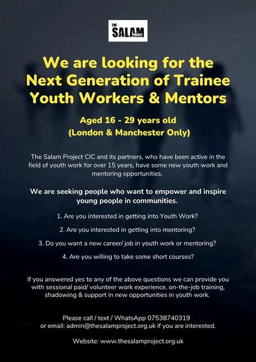 The Salam Project CIC supports young adults into employment through our youth work recruitment program.
