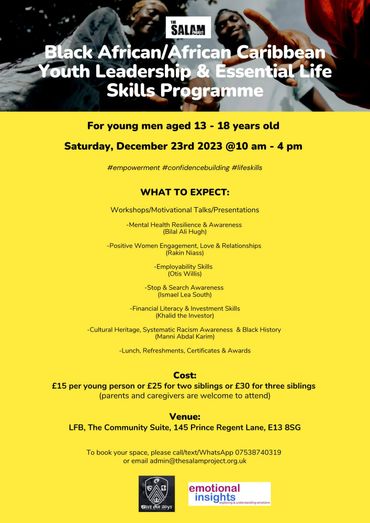 The Salam Project CIC are a BME urban youth outreach and mentoring social enterprise supporting young adults through accredited training, mentorship and work projects.